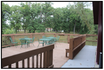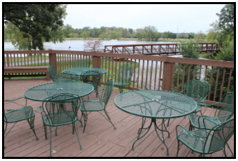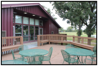 The newly remodeled event center is the park’s primary event facility. It has beautiful furnishings inside with a breathtaking view of the lake and outdoor water fountain from the veranda.